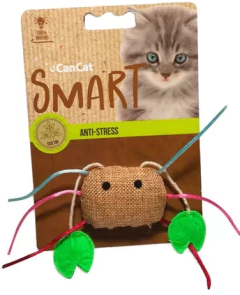 Peluche ecológico para gatos con diseño de cangrejo que estimula el juego activo.
